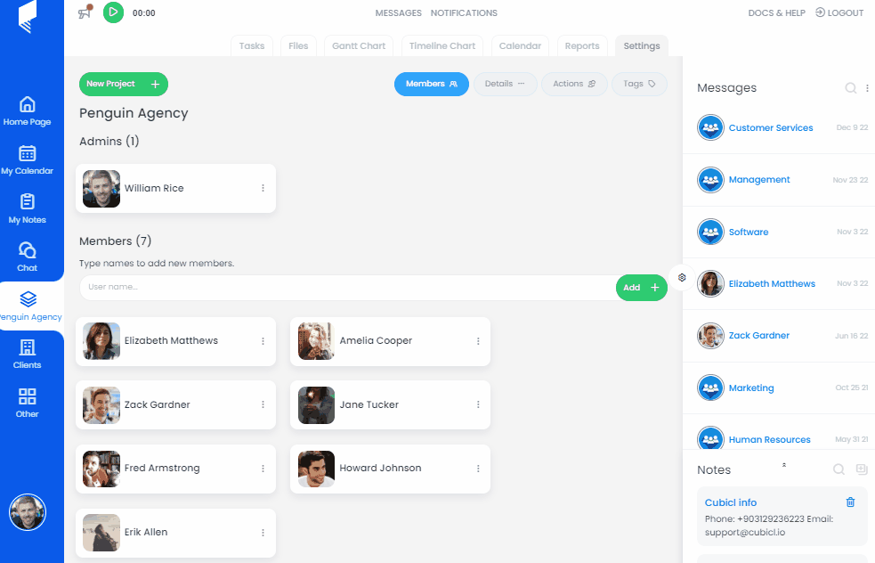 If you are a project admin, you can add new members to the project. The people you want to add to the project must already be invited to Cubicl and had an account. To invite members to the organization account, check the [Organization Settings](https://docs.cubicl.io/organization-and-user-settings/organization-settings) page.